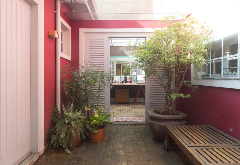 Mari nasceu em São Paulo, mas teve o privilégio de morar no interior durante boa parte de sua infância. A proximidade com a natureza e a liberdade de crescer longe das neuras da cidade grande lhe mostraram a importância da simplicidade e do contato com o verde. Isso explica porque ela se encantou tanto com a área externa nos fundos do terreno – mesmo cimentado e quase sem vida na época da mudança, o quintal lhe sorriu cheio de expectativas. Durante a pequena reforma na casa, a produtora abriu canteiros laterais no piso existente e criou seu pedacinho de terra para poder encher o lugar de plantas.