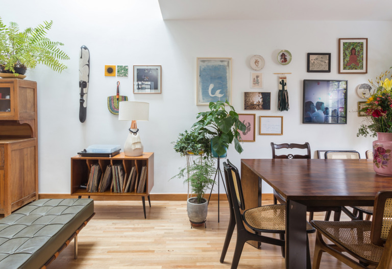 Sem a menor vontade de ter uma daquelas casas com cara de showroom, onde as pessoas têm medo de bagunçar e realmente usar os ambientes, Mariana dedicou muito trabalho e energia para que seu lar fosse interessante, confortável e cheio de histórias legais. “Gosto de olhar para algum objeto e lembrar de como o consegui, o que fiz para reformá-lo ou de que viagem ele veio. Acho que uma casa com memórias assim tem mais vida.”, define ela.