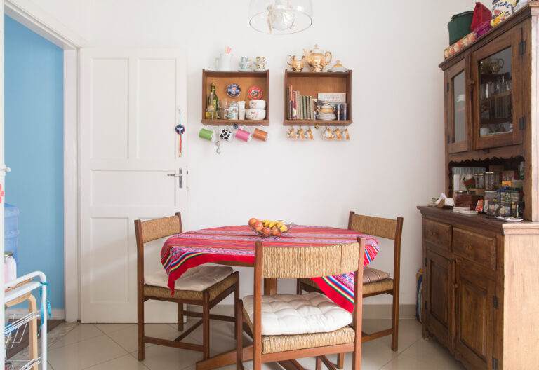 Além do mobiliário, o olhar garimpeiro de Sérgio foi atraído pela arte popular brasileira. Aos poucos sua coleção de bonecos e animais de madeira foi tomando conta de todos os espaços, trazendo cor e poesia à decoração. “Muita gente não dá o devido valor à arte popular, mas é um universo muito grande e com obras maravilhosas. Eu sempre digo que o garimpo é o dom de ver algo bacana onde muitos não enxergam nada”. Desbravador de feiras e lojas com corredores repletos de itens empoeirados, mas recheados de histórias, o publicitário conseguiu criar um novo lar unindo tudo o que mais gosta.