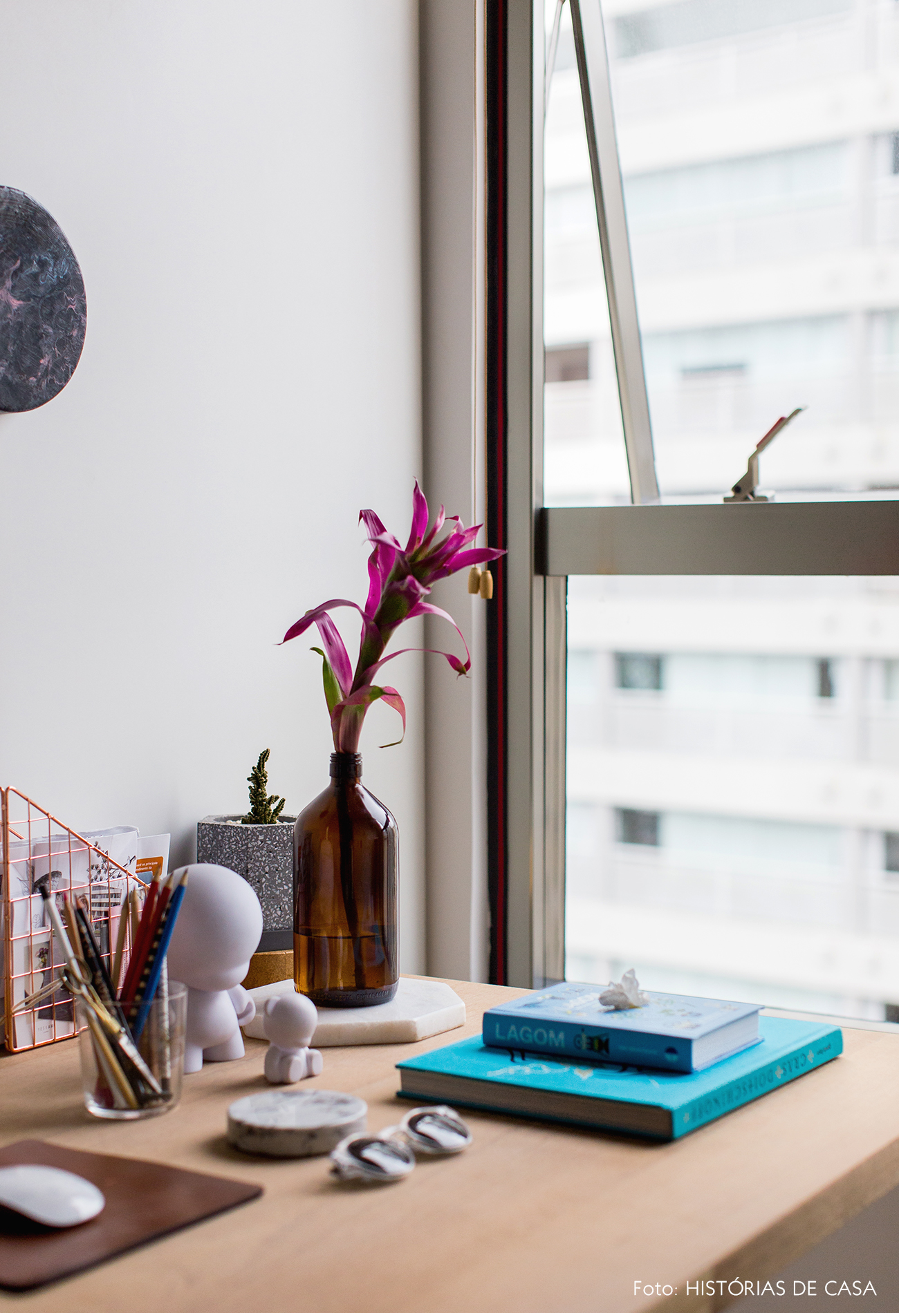 No fim, o apartamento como um todo ficou exatamente do jeito que a moradora queria. Desde o início ela tinha definido o que gostaria de sentir toda vez que chegasse em casa. “Aquela sensação de conforto, sabe? E eu sabia que para isso não precisava de muito, nada de mudanças drásticas, reformas ou algo do tipo, mas paciência para pesquisar e garimpar móveis e objetos de decoração. E de fato, hoje, sempre que chego em casa da rua, sinto um ‘abraço’, algo que me convida a ficar”.