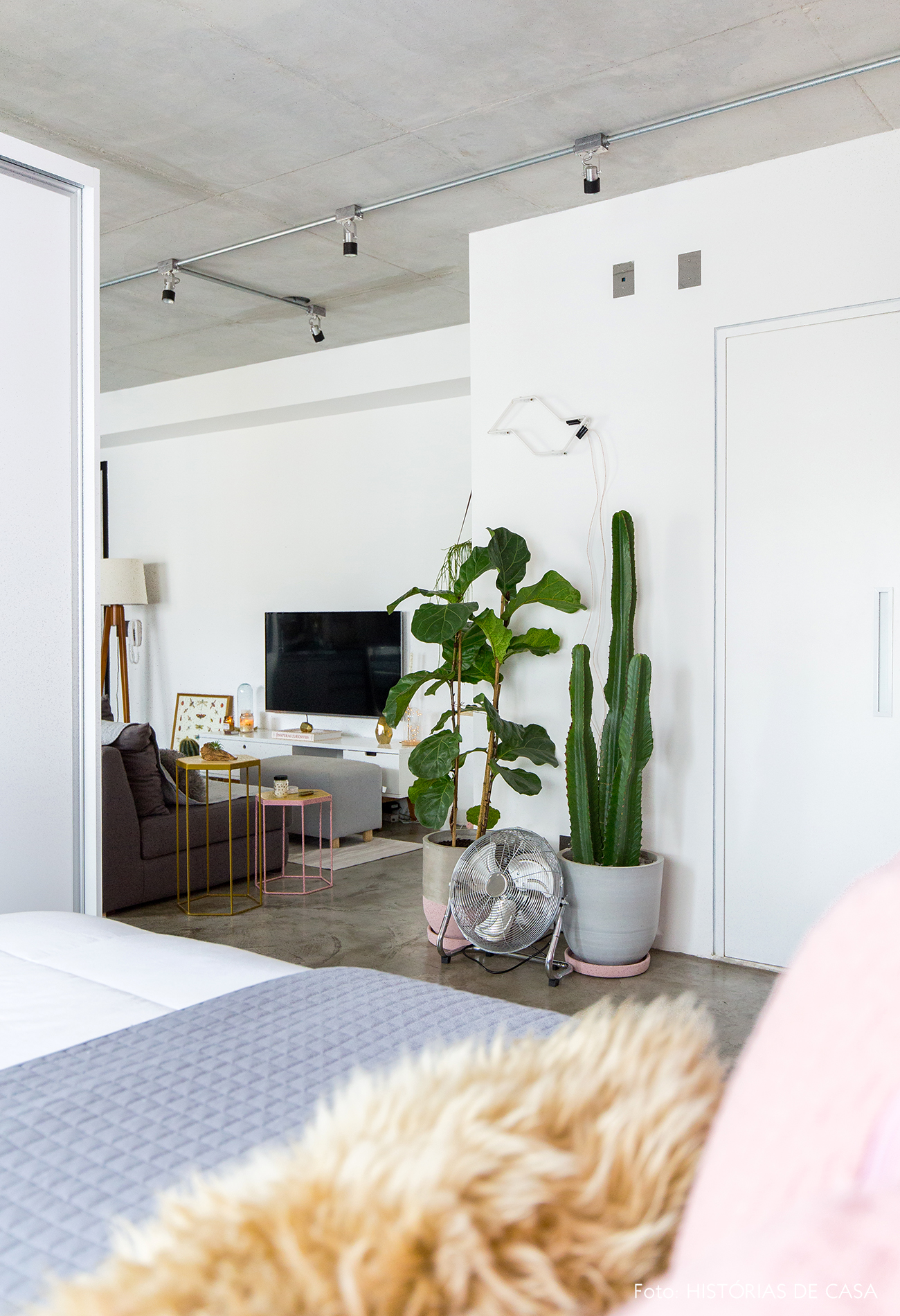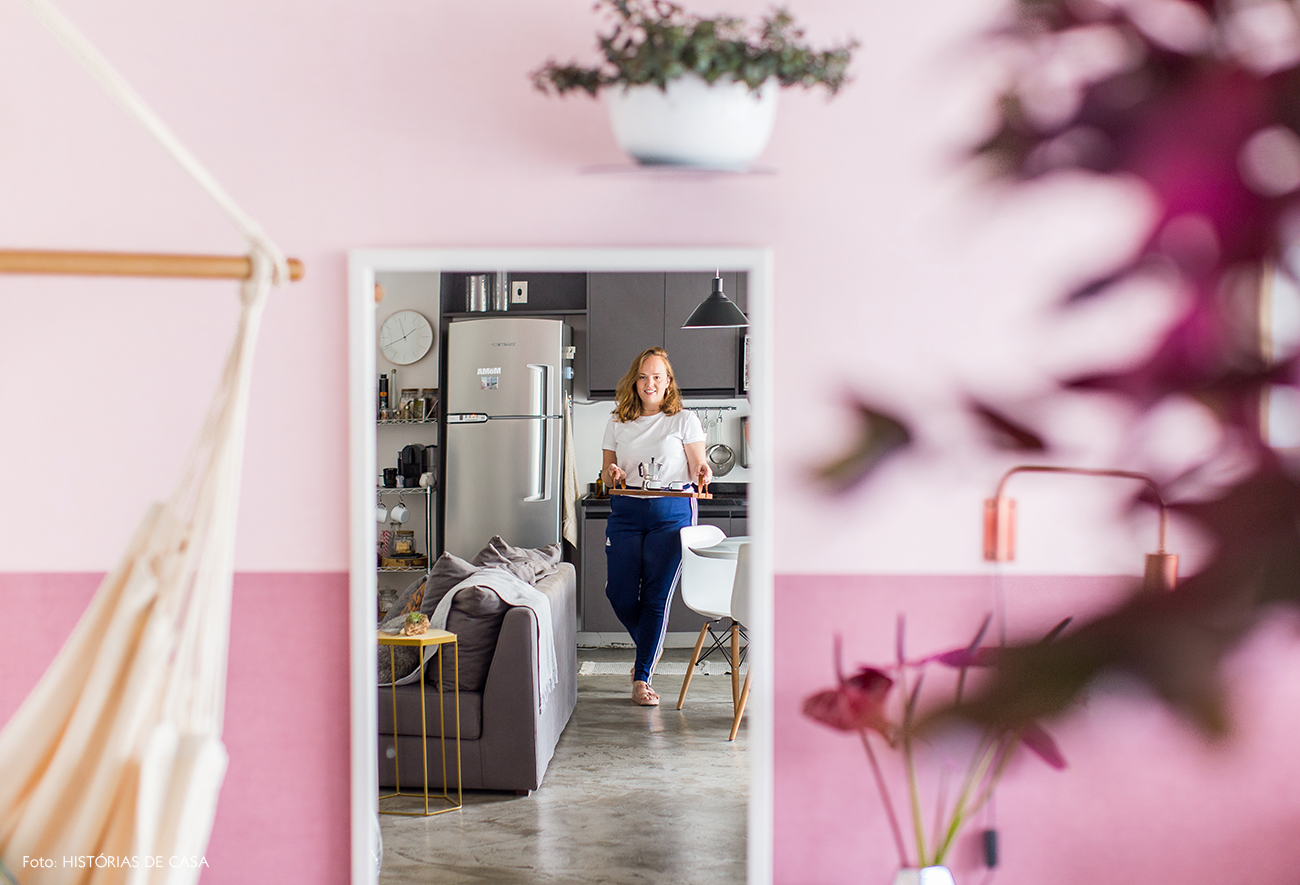 Quando a designer de produtos digitais Julia começou a procurar um apartamento para chamar de seu, o primeiro desejo da lista era que o espaço tivesse muita luz natural, então isso ditou sua busca. O que ela ainda não sabia é que iria encontrar um apê melhor do que imaginava, com outros atrativos além da iluminação: “A luz natural preenche o lar com um ar de magia e dá todo um charme a qualquer ambiente. Então quando visitei o apartamento me apaixonei de cara pelos janelões. Por outro lado, o que fez com que eu me encantasse mais ainda foi a planta baixa. A proposta sem nenhuma parede incentivou muito a minha criatividade”, Julia fala.