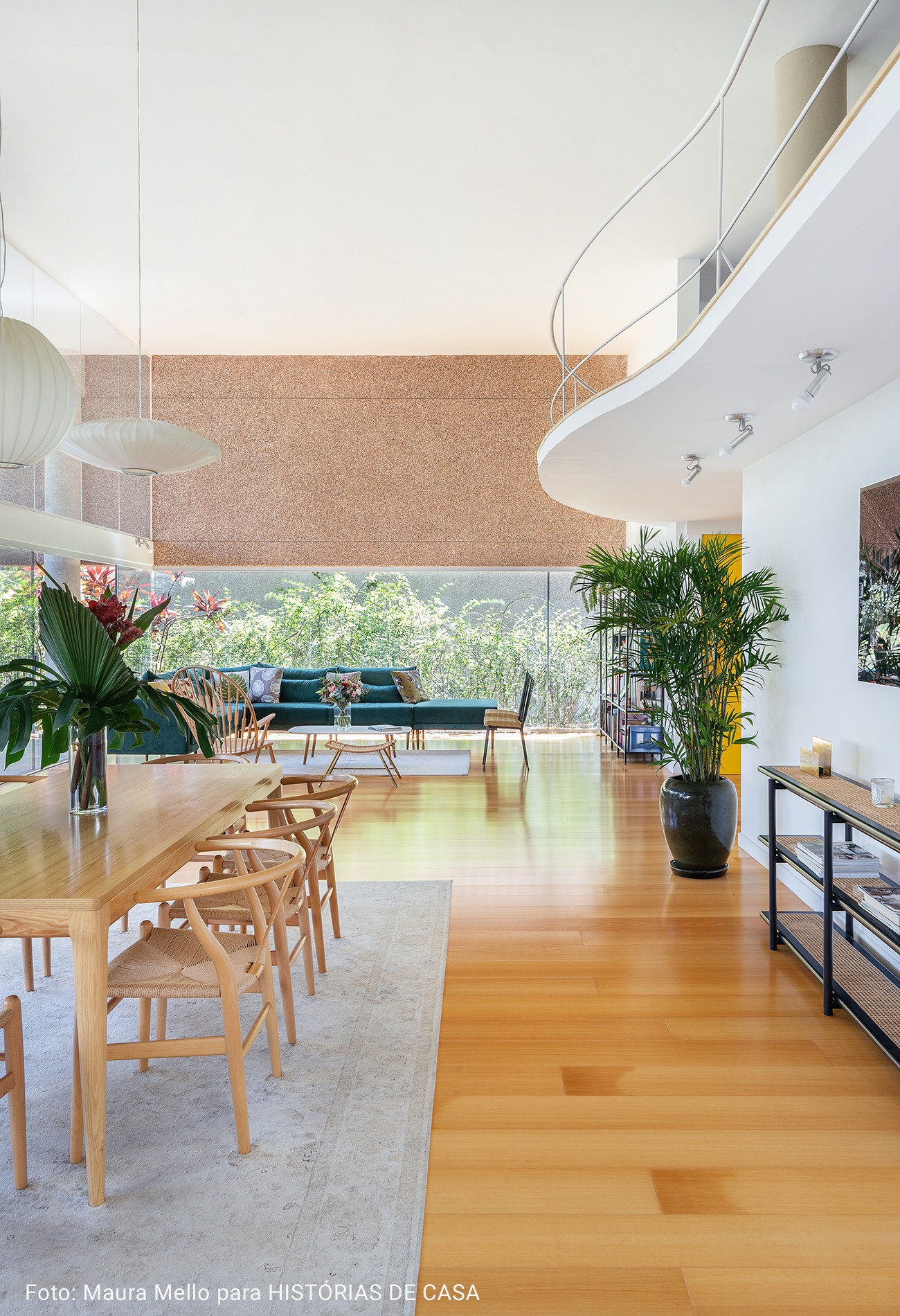 Sophie diz que a busca por um lar foi um pouco demorada, já que ela gostaria de morar em uma casa, mas seu marido preferia um apartamento. Com muita sorte, eles encontraram a combinação perfeita entre as duas possibilidades: um apê amplo e com ares de casa em um prédio com poucos vizinhos e muita natureza. “A arquitetura foi uma das coisas que mais gostei no Brasil, e este projeto do arquiteto Ricardo Chahin nos pareceu como um manifesto ao modernismo tropical”, a moradora fala. Aproveitando o verde das plantas que cercam o espaço e a beleza original do prédio, a família pôde fazer uso da ampla metragem para expressar todo o seu estilo e personalidade.