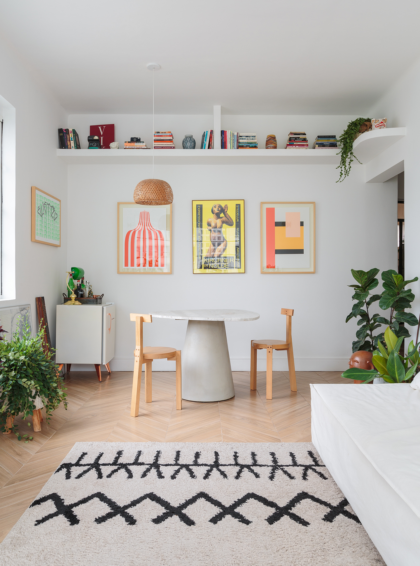 Nesse apartamento pequeno, tudo o que os moradores mais amam tem seu espaço