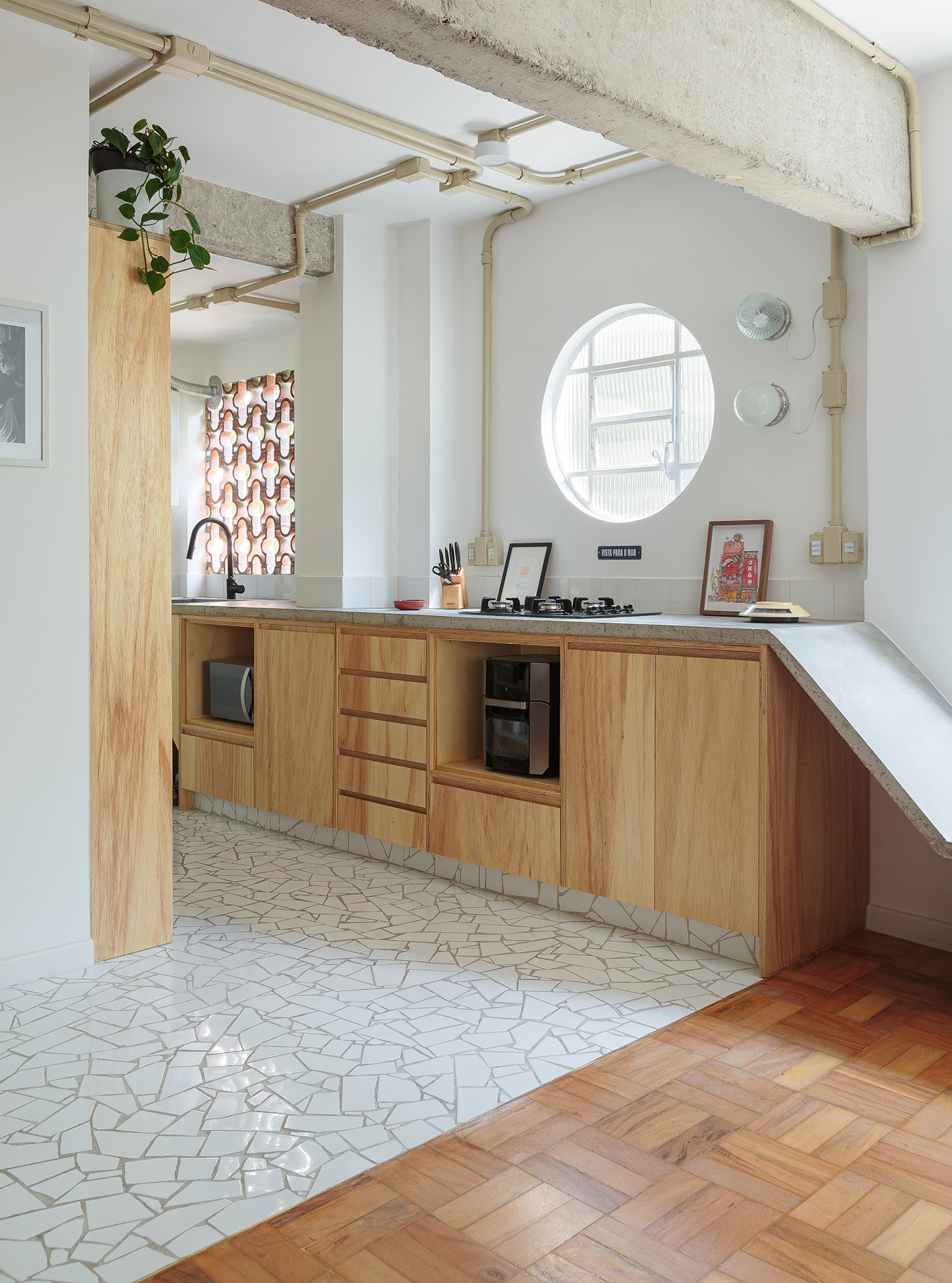 Neste apê criativo, a arquitetura traz escolhas autênticas da sala aos banheiros