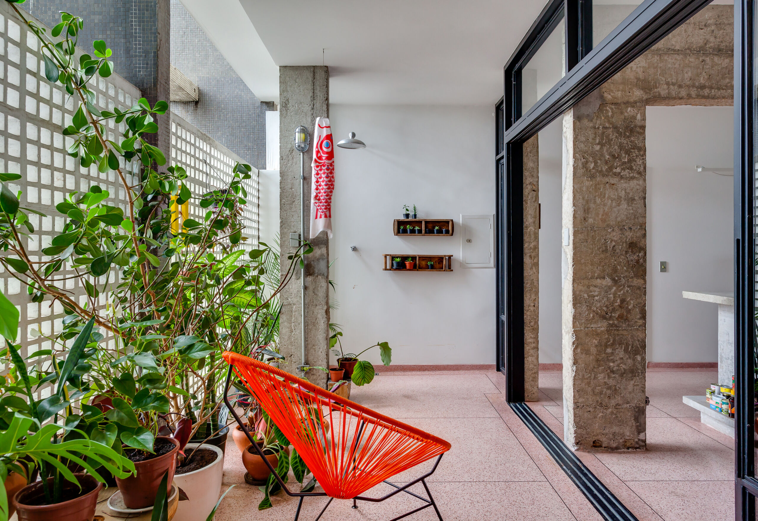 Integração, cores fortes e materiais interessantes em um apartamento no Edifício Copan