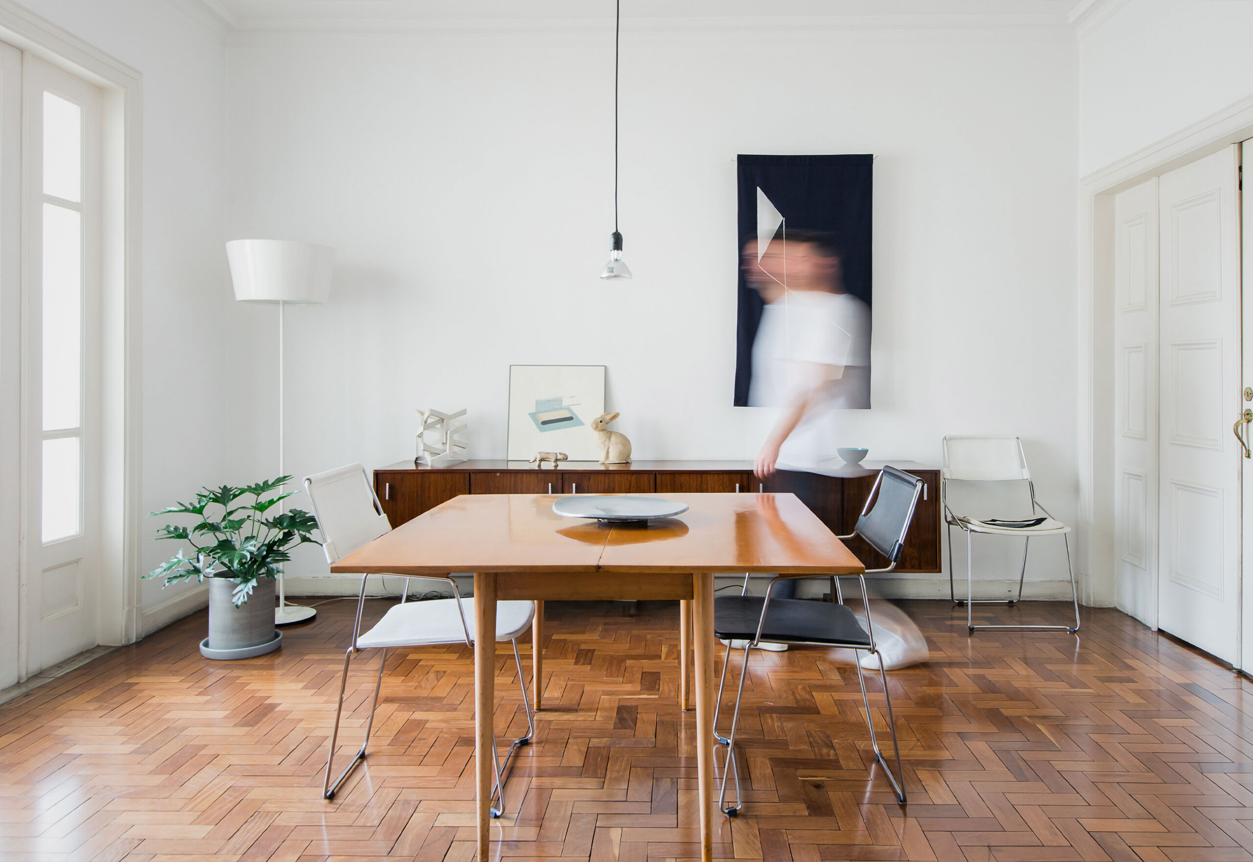 Espaços vazios e muito branco definem a atmosfera desse apartamento antigo