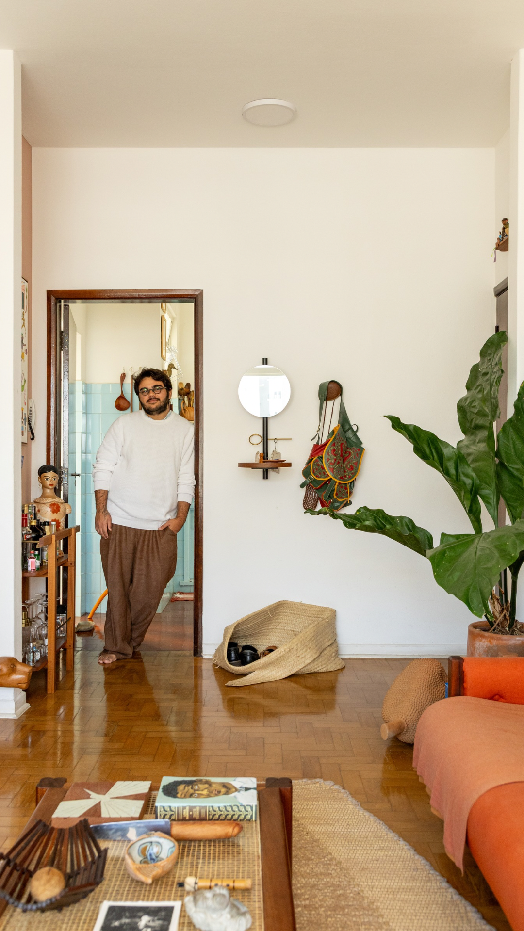 Peças afetivas e artesanato brasileiro compõem o lar desse casal de estilistas